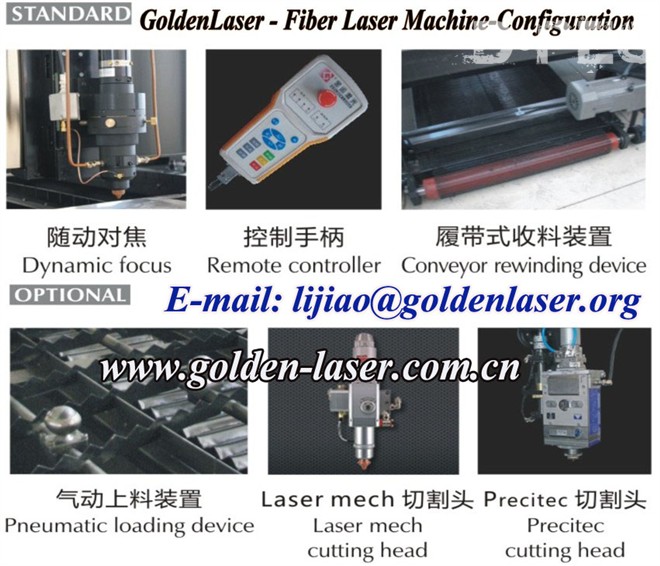 (1) The fiber laser series are Golden Laser’s new line of metal precise processing equipment powered by fiber laser technology. The quality fiber laser beam results in faster cutting speeds and higher quality cuts compared to other cutting solutions. The key advantage of a fiber laser is its short beam wavelength (1,064nm). The wavelength, which is ten times lower than that of a conventional C02 laser, generates high absorption into metals. This makes the fiber laser become a perfect tool for cutting sheets of stainless steel, mild steel, aluminum, brass, etc.